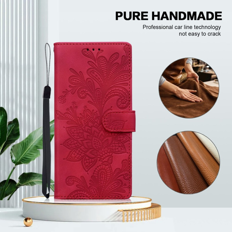Descubra a nossa elegante capa tipo carteira para o Samsung Galaxy A26 5G. Fabricada em pele PU de alta qualidade, oferece uma proteção robusta e um design sofisticado com o seu motivo floral de renda estampado.