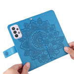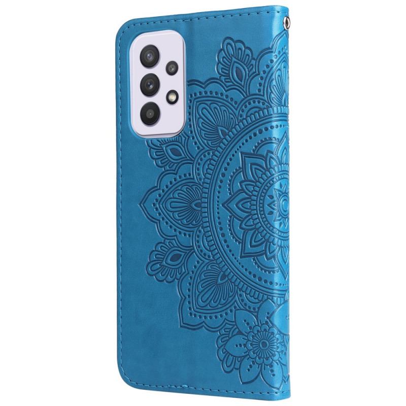 Esta capa para Samsung Galaxy A33 5G, com a sua mandala floral, também duplica como carteira e suporte de mãos livres.