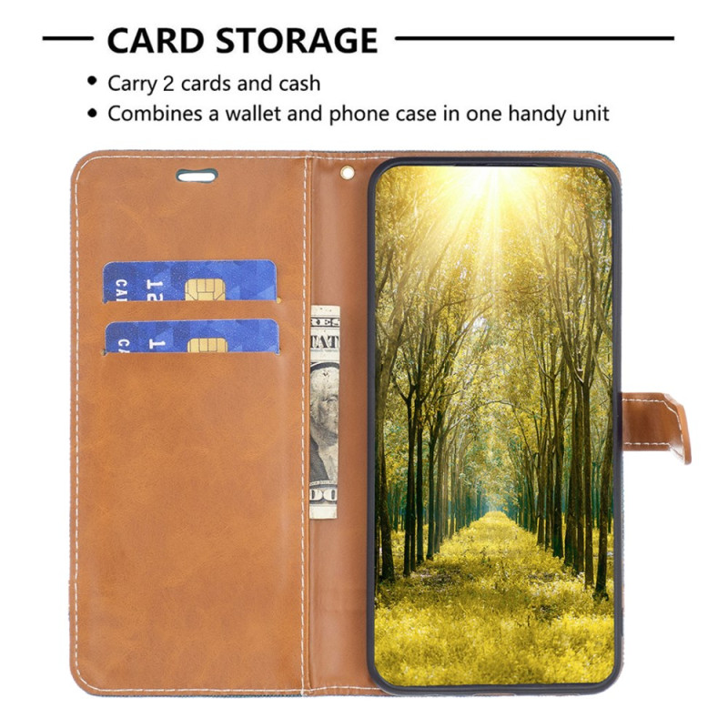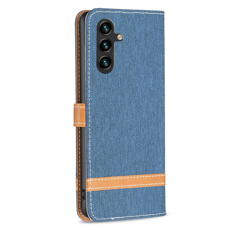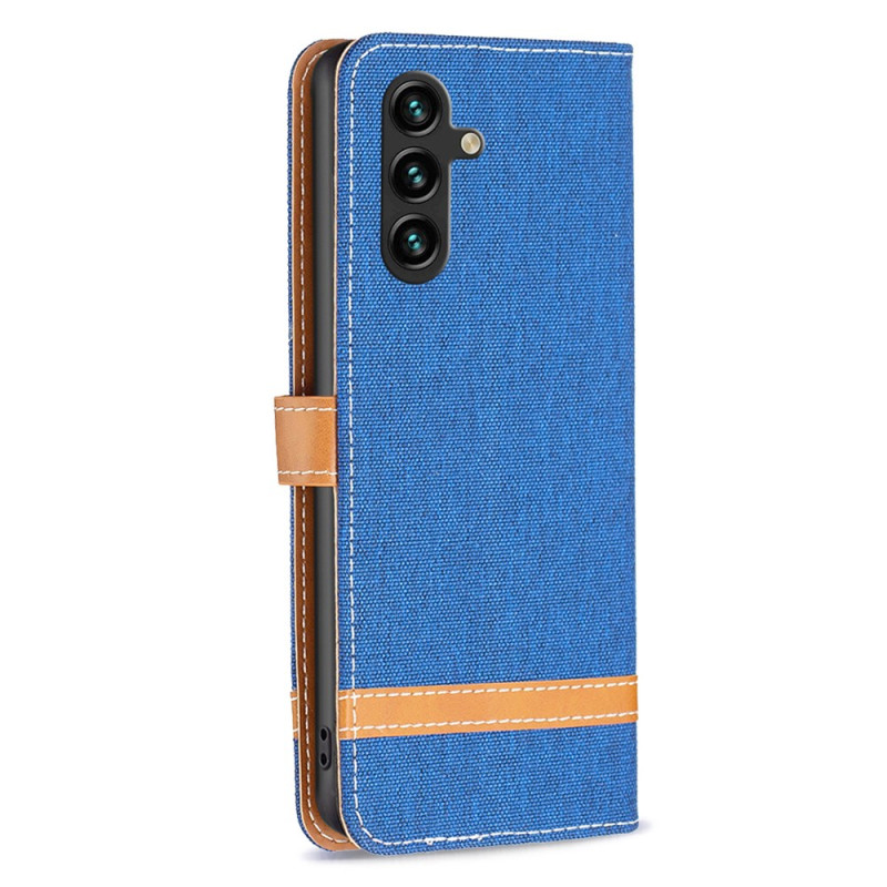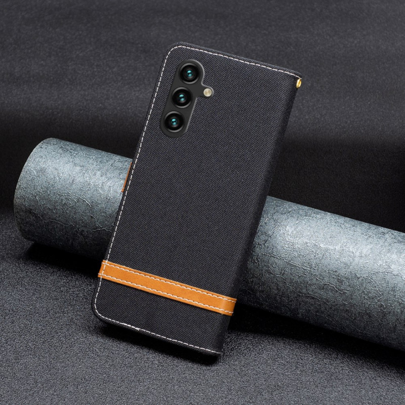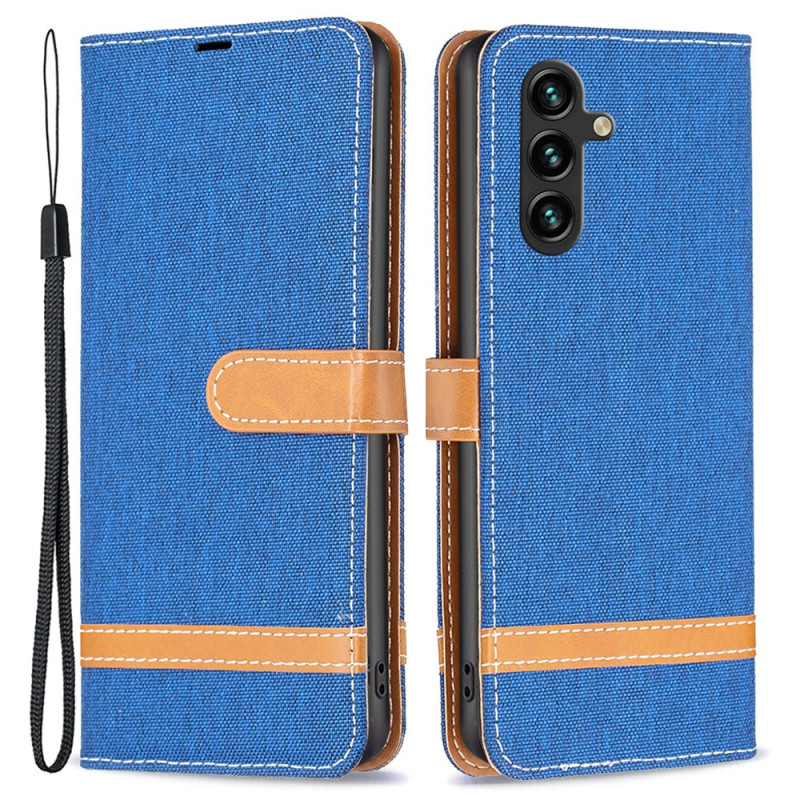 Esta capa elegante e única para o Samsung Galaxy A35 5G oferece proteção dupla com o seu design contrastante e pele de ganga.