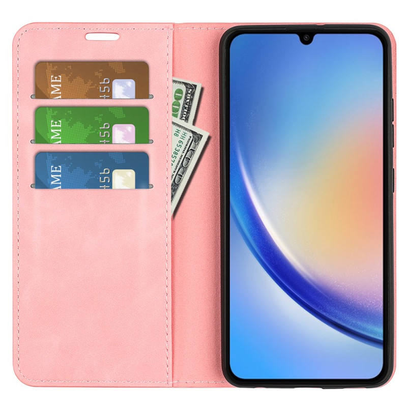 Descubra a nossa capa flip para o Samsung Galaxy A35 5G, que oferece uma dupla proteção graças à sua camada exterior em imitação de pele e ao revestimento interior em silicone macio.