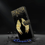 Étui portefeuille élégant avec motif 3D aile dorée pour Samsung Galaxy A37 5G. Doté de 2 emplacements pour cartes, 1 poche pour espèces et fonction support intégrée. Fermeture magnétique sécurisée et protection complète pour votre appareil.