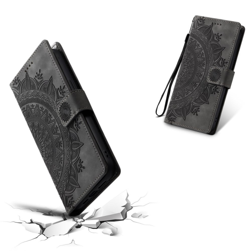 Étui portefeuille élégant pour Samsung Galaxy A37 5G avec motif mandala imprimé. Comprend 3 emplacements pour cartes, un compartiment pour billets, une dragonne pratique et une fonction support. Protection complète contre les rayures et l'usure quotidienne.