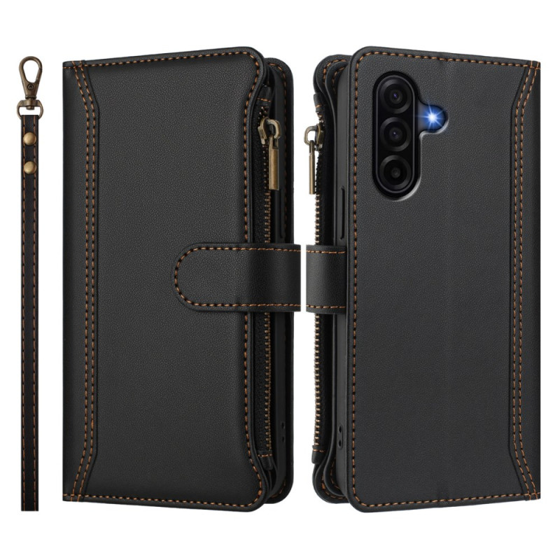 Étui portefeuille multifonction pour Samsung Galaxy A37 5G offrant une protection complète. Doté de 9 emplacements pour cartes, d'une poche zippée, d'une fermeture magnétique sécurisée et d'un support mains libres pratique. Inclut une dragonne pour un transport facile et sécurisé.