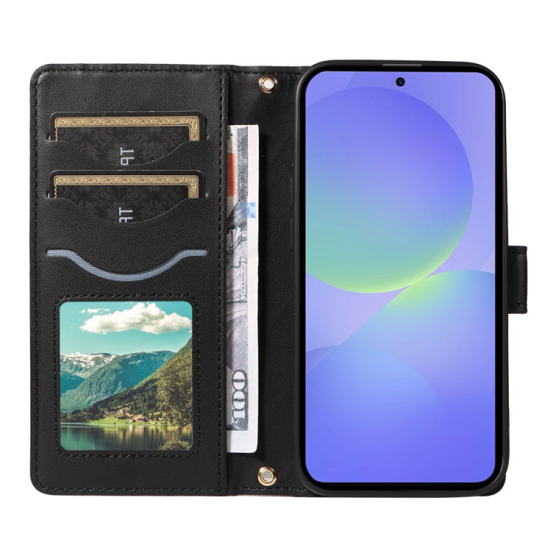 Protégez votre Samsung Galaxy A37 5G avec élégance grâce à cet étui portefeuille multifonction. Son design losange sophistiqué, ses 3 emplacements pour cartes et sa poche pour espèces en font l'accessoire idéal au quotidien...