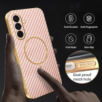Protégez votre Samsung Galaxy A37 5G avec cette coque en TPU texturé effet fibre de carbone. Design élégant avec finition électrolytique, résistante aux traces de doigts et aux chocs. Bords surélevés pour protéger l'écran et la caméra.