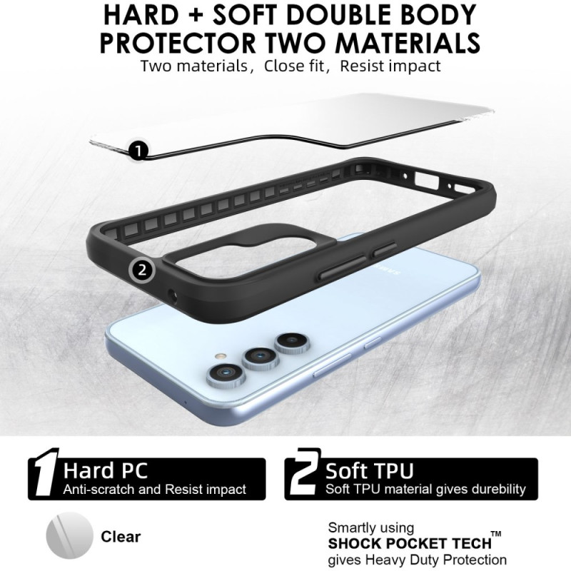 Esta capa transparente, com rebordos de silicone, protege o Samsung Galaxy A54 5G, preservando o seu design.