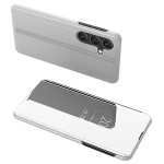 Descubra a nossa capa elegante e funcional para o Samsung Galaxy A56 5G. Fabricada em pele PU de alta qualidade com uma superfície espelhada galvanizada, oferece uma proteção completa com uma janela de visualização translúcida e um suporte integrado.