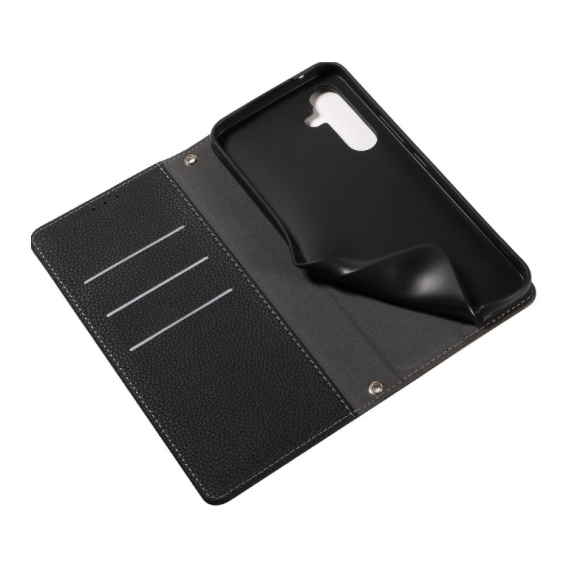 Descubra esta elegante capa tipo carteira para o Samsung Galaxy A57 5G que combina estilo e proteção. Com uma refinada textura de lichia, compartimentos para cartões, uma prática função de suporte e uma correia de pulso amovível para facilitar o transporte diário.