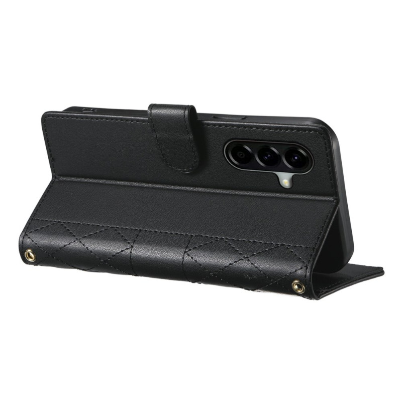 Descubra a capa de couro PU para carteira do Samsung Galaxy A57 5G com um elegante design acolchoado. Com 3 ranhuras para cartões, um bolso para dinheiro e uma função de suporte integrada. Inclui duas correias amovíveis para um transporte cómodo.