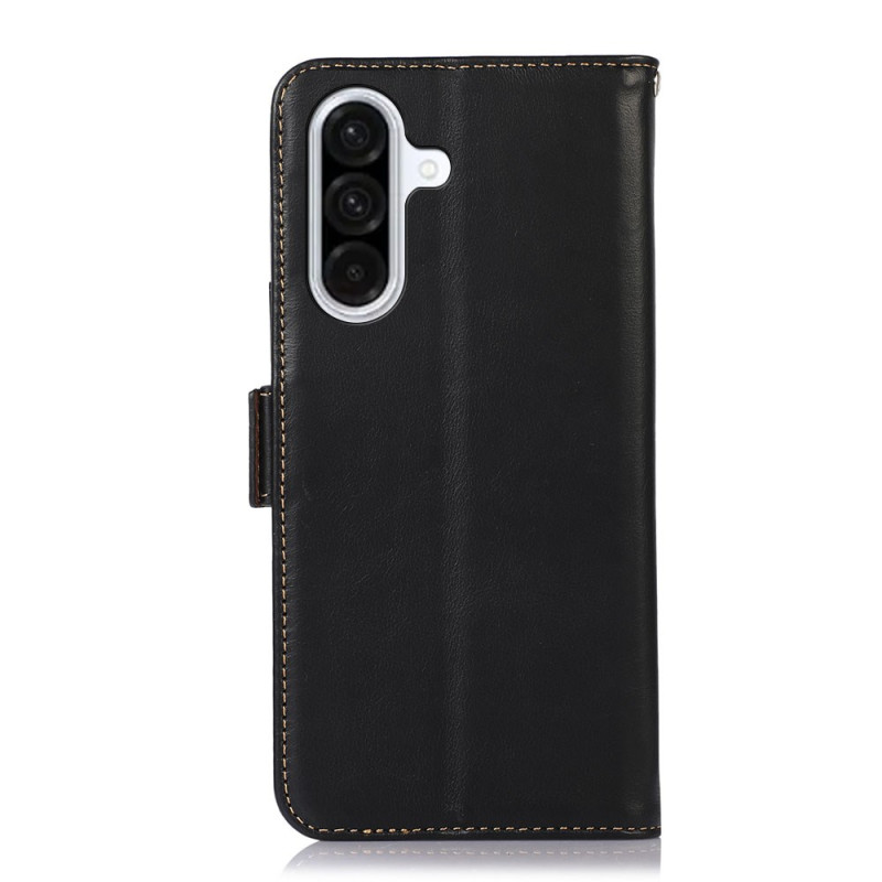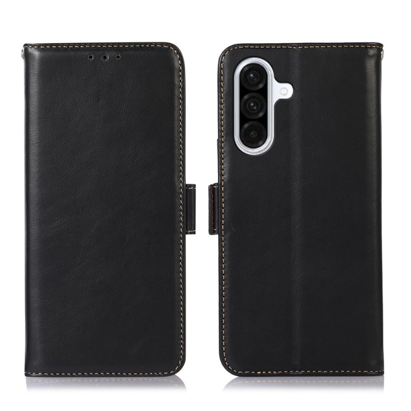 Proteja o seu Samsung Galaxy A57 5G com estilo com este capa para carteira em pele genuína. Com tecnologia de bloqueio RFID, 3 ranhuras para cartões e um bolso para dinheiro, combina segurança e praticidade.
