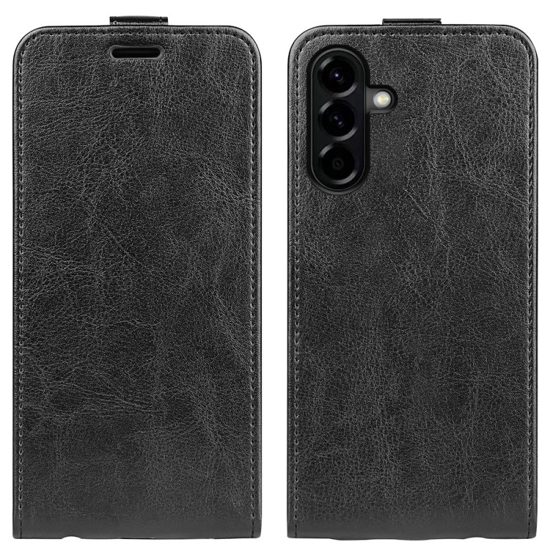 Descubra a nossa elegante capa com aba vertical para o Samsung Galaxy A57 5G. Fabricada em pele PU de primeira qualidade com textura de grão de sela, combina estilo e praticidade com o seu suporte para cartões integrado e fecho magnético seguro para uma proteção óptima.