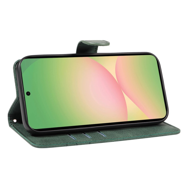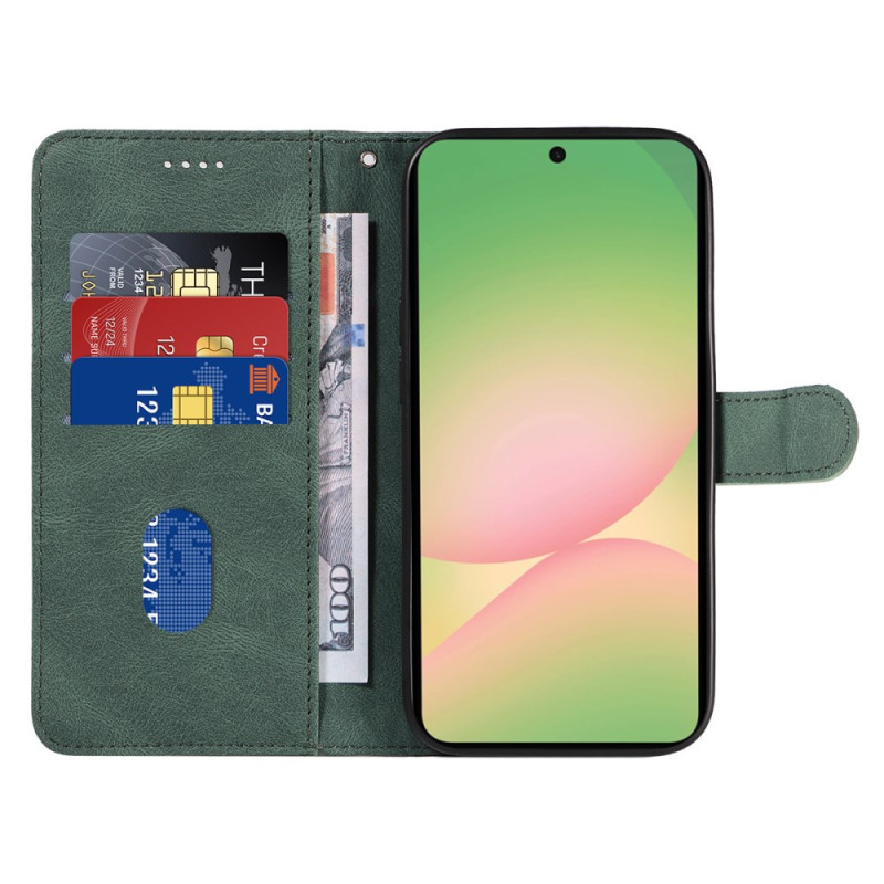 Proteja o seu Samsung Galaxy A57 5G com estilo com esta capa para carteira em pele de alta qualidade. Design requintado com linhas curvas, 3 ranhuras para cartões, compartimento lateral para dinheiro e função de suporte integrada para visualização em mãos-livres.