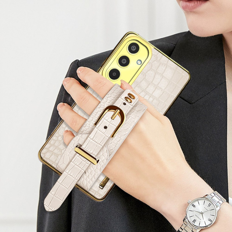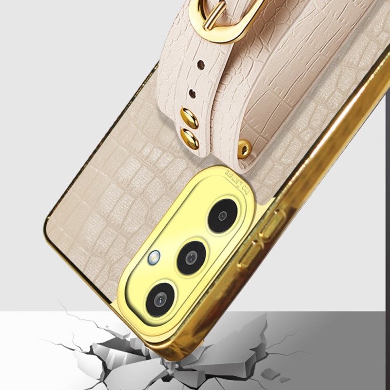 Descubra a nossa elegante capa para o Samsung Galaxy M35 5G. Fabricada em pele PU com textura de crocodilo e TPU, oferece uma proteção duradoura e um toque agradável.