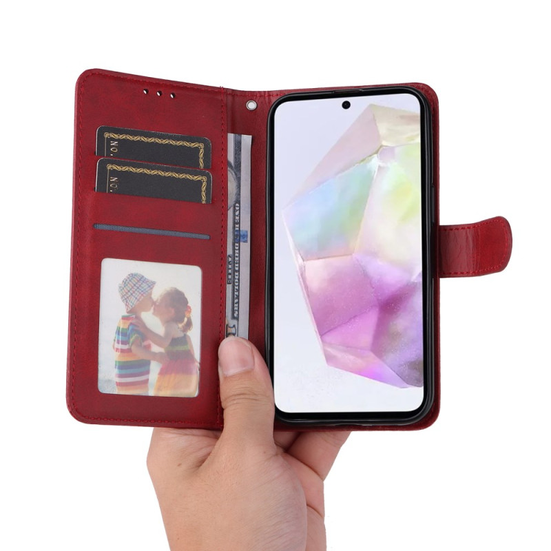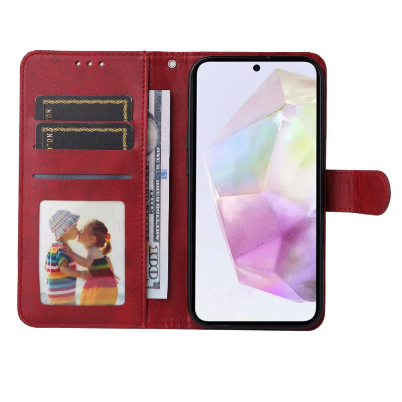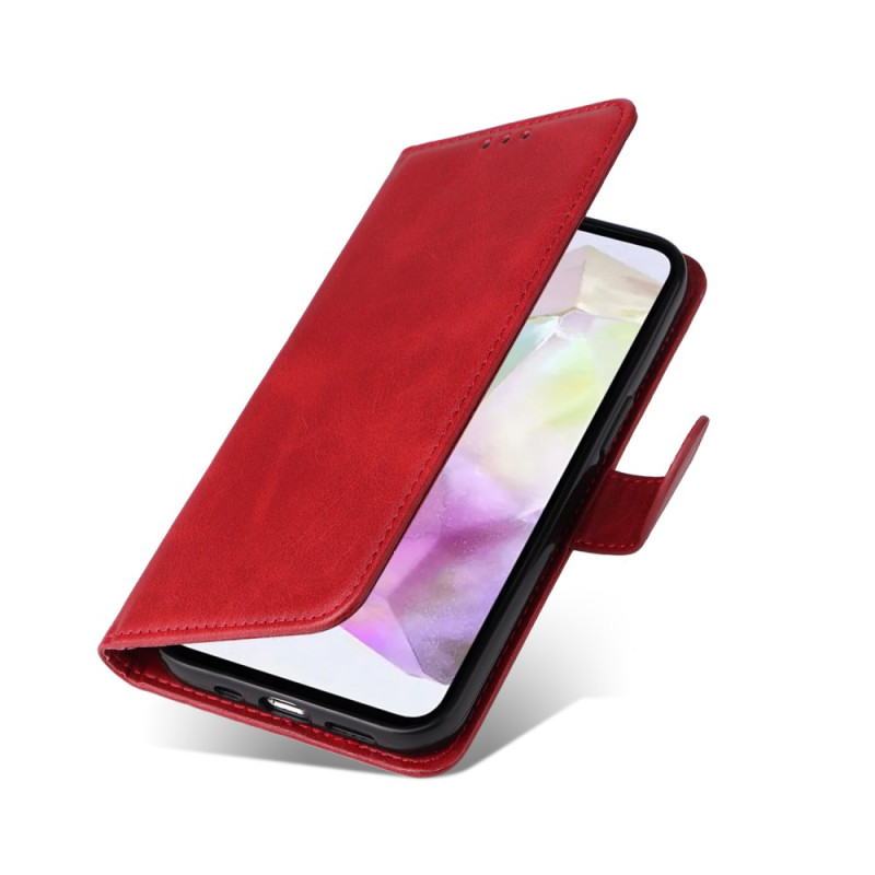 Descubra a nossa elegante capa tipo carteira para o Samsung Galaxy M35 5G. Combinando proteção e funcionalidade, possui ranhuras para cartões, uma função de suporte e um fecho magnético seguro.