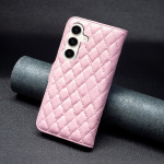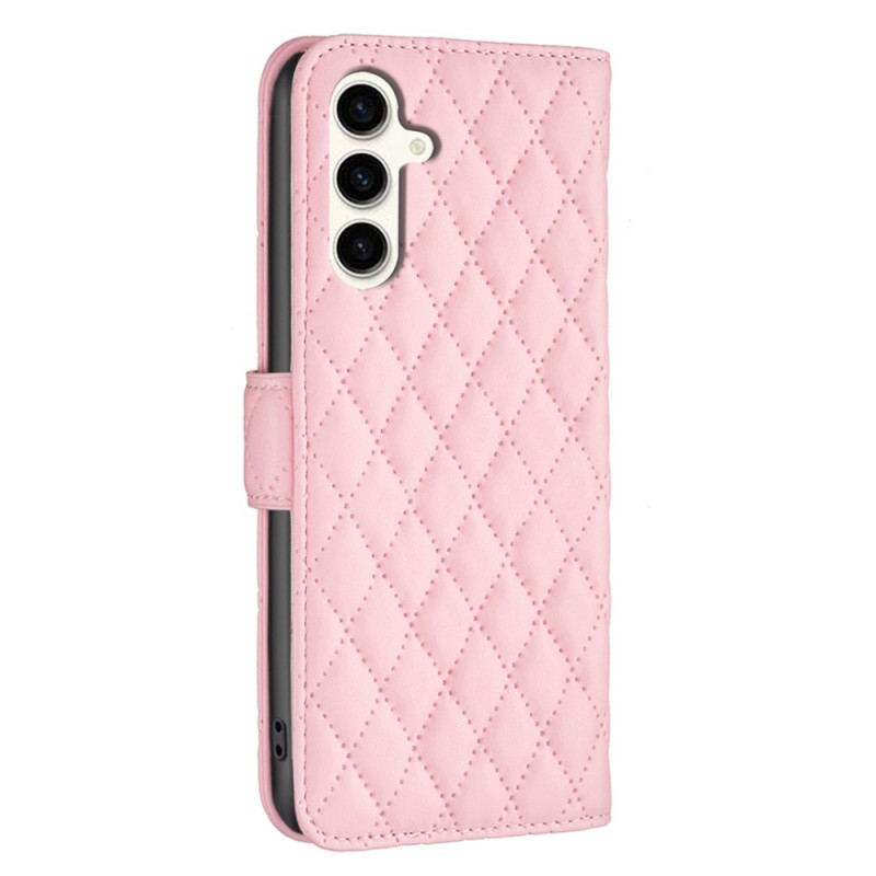 Descubra a nossa elegante capa em pele para o Samsung Galaxy M35 5G. Combinando estilo e funcionalidade, oferece proteção completa com o seu design de grelha em diamante, ranhuras para cartões, compartimento para notas e função de suporte.