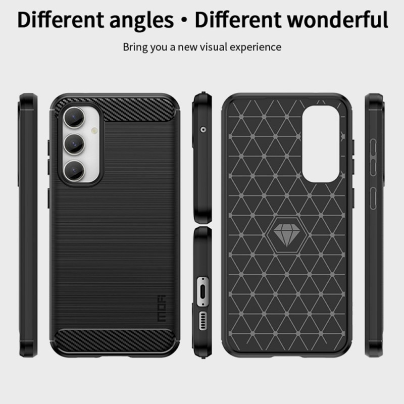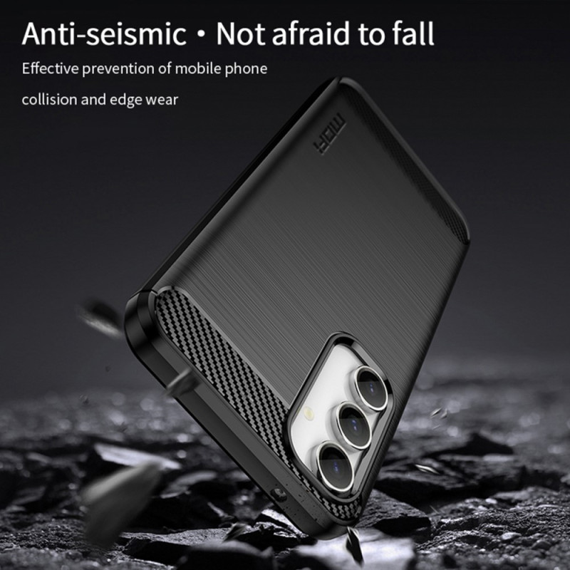 A estrutura em fibra de carbono escovada da MOFI é ideal para o Samsung Galaxy S23 FE, combinando eficiência e elegância.
