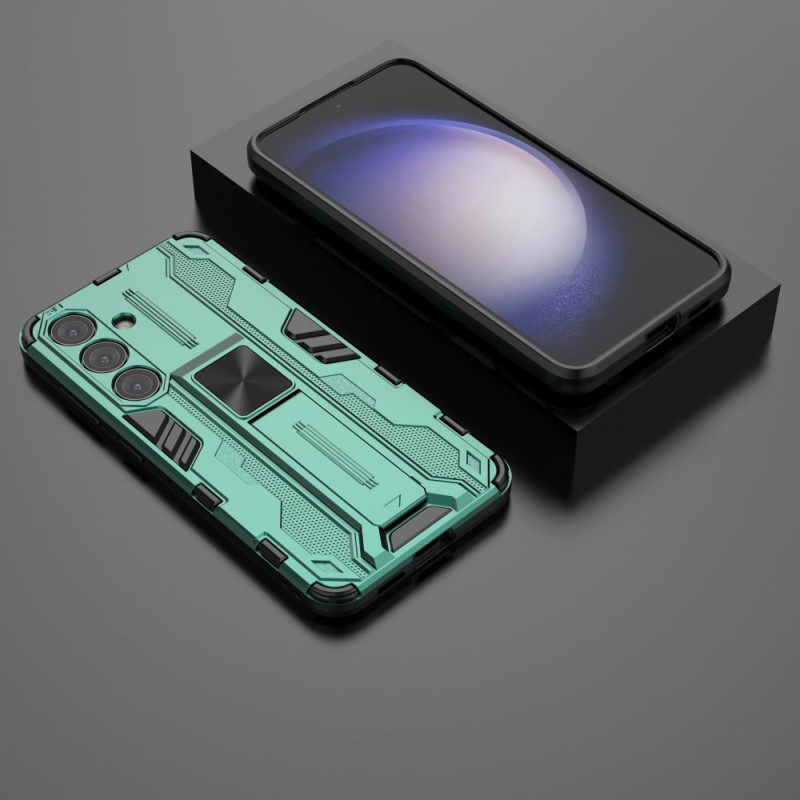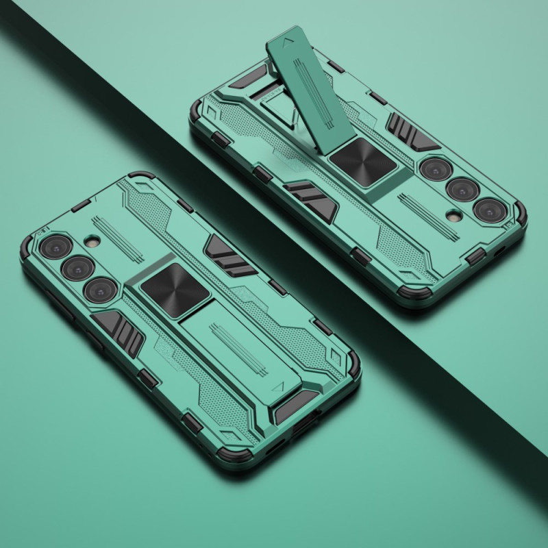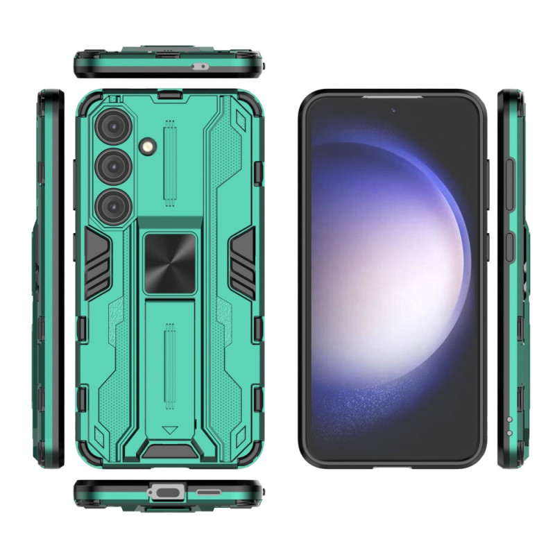 Découvrez notre coque de protection robuste avec support qui permet le mode mains libres à l'horizontale et à la verticale pour Samsung Galaxy S24 5G.
