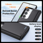 Esta capa de bateria de 10000mAh oferece uma vida útil prolongada da bateria para o Samsung Galaxy S25 ou S24, ao mesmo tempo que proporciona uma proteção robusta para o telemóvel. O indicador LED de quatro níveis facilita a monitorização dos níveis de energia, enquanto a gestão inteligente da bateria optimiza a utilização da bateria para melhorar a sua duração. A construção durável em silicone, PC e ABS garante a máxima resistência, mesmo sob utilização intensiva. Os circuitos de segurança incorporados evitam sobrecargas, curto-circuitos e sobreaquecimento para uma utilização fiável.
