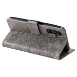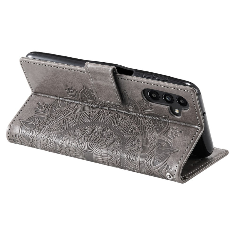 Capa de carteira elegante com padrão totem impresso para Samsung Galaxy S26 5G. Design 2 em 1 com suporte dobrável ajustável, armazenamento de cartões e uma prática correia de mão. Proteção total contra riscos e choques diários.