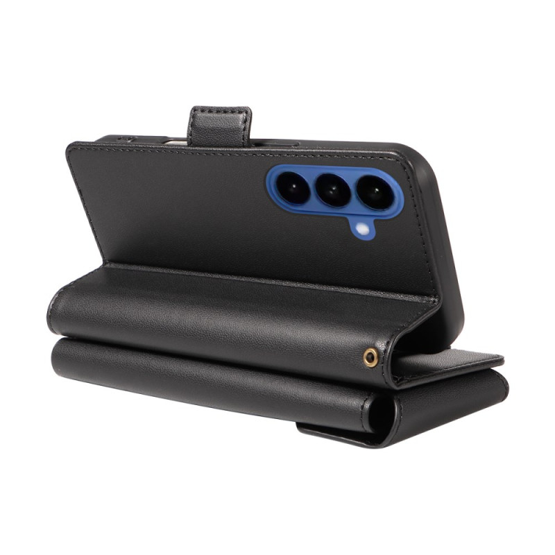 Capa multifunções em pele PU de alta qualidade para Samsung Galaxy S26 / S26 Pro. Com várias ranhuras para cartões, compartimentos para dinheiro, função de suporte integrada e alça de mão amovível. Proteção elegante e prática para o seu dia a dia.