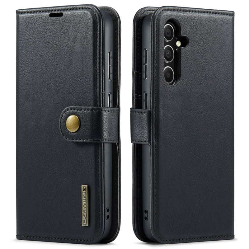 Étui 2-en-1 innovant avec portefeuille détachable magnétique et coque arrière amovible. Comprend 3 emplacements pour cartes, une poche pour billets, une fermeture sécurisée par fermoir et un support de visualisation intégré pour une expérience mains libres optimale.