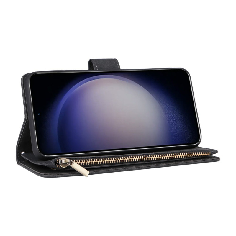Découvrez cet étui portefeuille multifonction en cuir pour Samsung Galaxy S26 5G. Avec plusieurs emplacements pour cartes, une poche zippée et une dragonne pratique, il combine style et fonctionnalité pour protéger votre téléphone au quotidien.