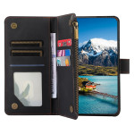 Étui multifonction pour Samsung Galaxy S26 5G offrant 9 emplacements pour cartes, 2 poches pour billets et une section zippée. Doté d'une fonction support mains libres, d'une fermeture magnétique sécurisée et d'une dragonne détachable pour un transport...