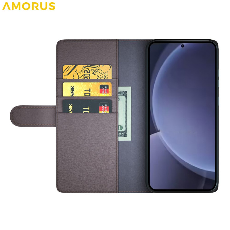 Protégez votre Samsung Galaxy S26 avec cet élégant étui portefeuille en cuir véritable. Doté de 3 emplacements pour cartes, d'une poche pour espèces et d'un support pliable pour un visionnage mains libres. La fermeture magnétique sécurisée garde vos essentiels en toute sécurité.