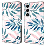 Capa com aba elegante com motivo de folha de aguarela para Samsung Galaxy S26 Plus 5G. Inclui um suporte dobrável, 2 ranhuras para cartões e um fecho magnético seguro. Proteção completa contra riscos e choques do dia a dia.