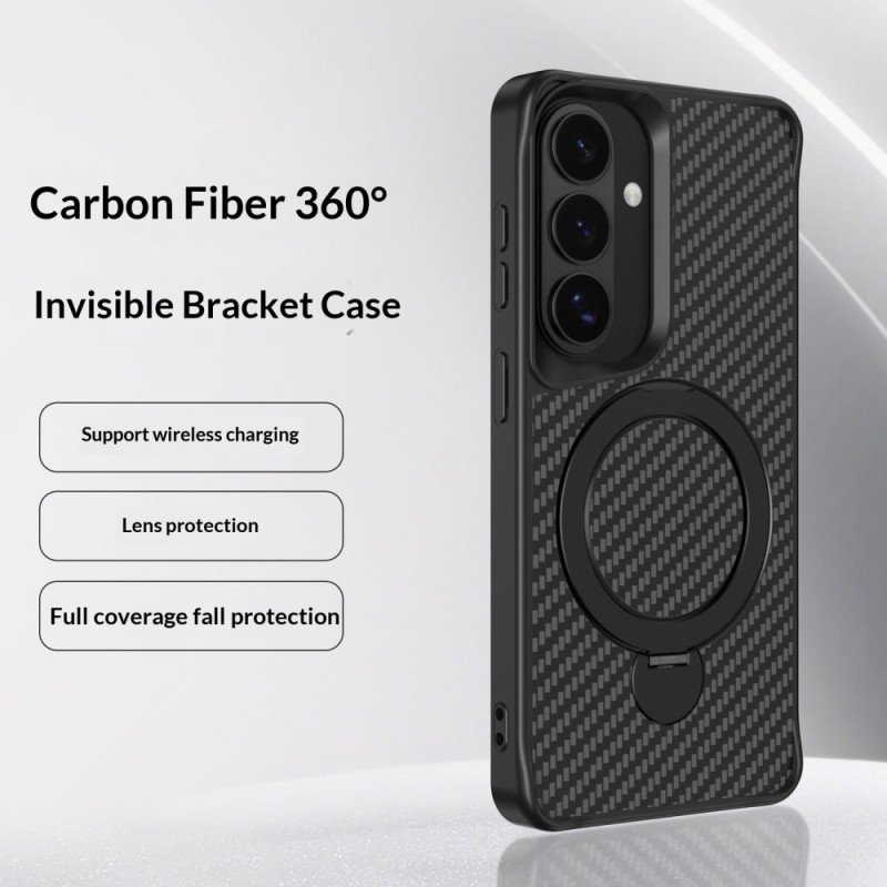 Proteja o seu Samsung Galaxy S26 Plus 5G com esta capa inovadora com um suporte magnético rotativo de 360°. O seu elegante design em fibra de carbono combina estilo e robustez, enquanto a sua compatibilidade magnética facilita a utilização de acessórios.
