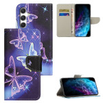 Capa de carteira elegante com padrão de borboleta cintilante para Samsung Galaxy S26 Plus. Proteção total em pele PU de primeira qualidade com revestimento em TPU flexível. Design texturado antiderrapante, 2 ranhuras para cartões, suporte ajustável e fecho magnético seguro.