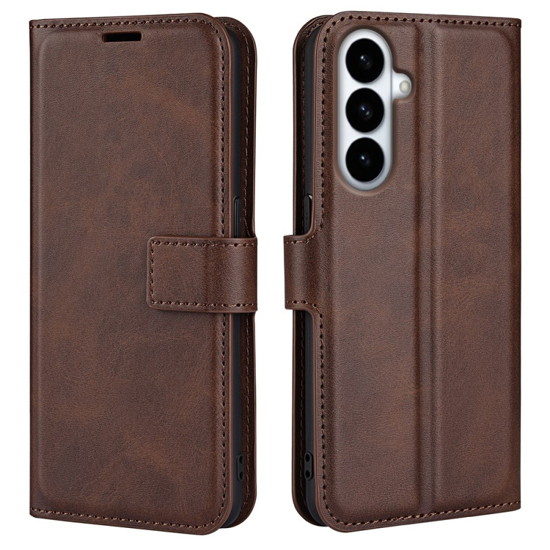 Capa elegante em pele texturizada para carteira com proteção total para o seu Samsung Galaxy S26 Plus. Inclui 3 ranhuras para cartões, um compartimento para notas e um prático suporte dobrável. Fecho magnético seguro e acesso total a todas as funcionalidades.