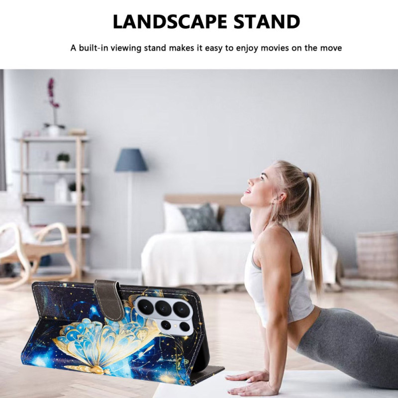 Proteja o seu Samsung Galaxy S26 Ultra com estilo com esta elegante capa de carteira com um bonito motivo de borboleta. Com compartimentos para cartões, um suporte ajustável e uma prática correia de pulso.