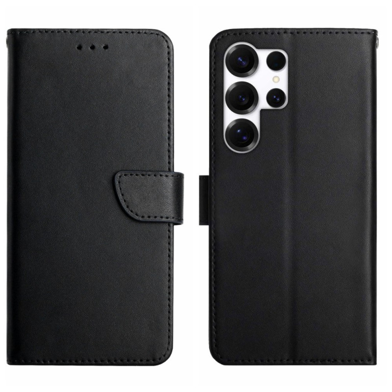 Capa elegante em pele de vaca genuína com textura Nappa para o Samsung Galaxy S26 Ultra. Combina estilo e proteção com um design de carteira 2 em 1, suporte ajustável e fecho magnético seguro para uma experiência premium.