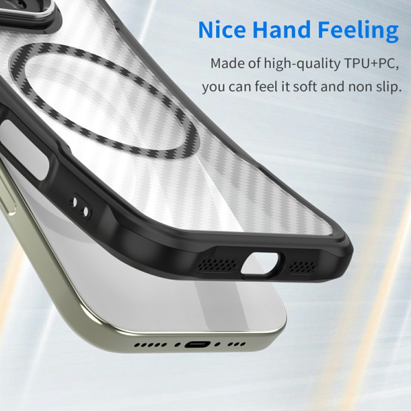 Proteja o seu Samsung Galaxy S26 Ultra com esta elegante capa híbrida compatível com MagSafe. A sua textura de fibra de carbono resistente a impressões digitais combina estilo e força. Construção durável em PC e TPU para uma proteção óptima contra quedas e riscos.