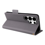 Descubra a nossa elegante capa tipo carteira para o Samsung Galaxy S26 Ultra. Textura de lichia refinada, função mãos-livres e vários compartimentos para cartões e dinheiro. Proteção completa com fecho magnético seguro e prática correia de mão incluída.