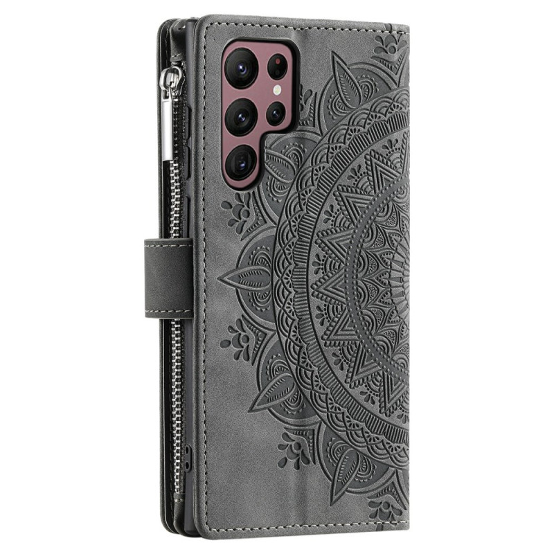 Proteja o seu Samsung Galaxy S26 Ultra com estilo com este elegante capa de carteira com um motivo de mandala. Tem várias ranhuras para cartões, um bolso com fecho e uma prática alça de mão.