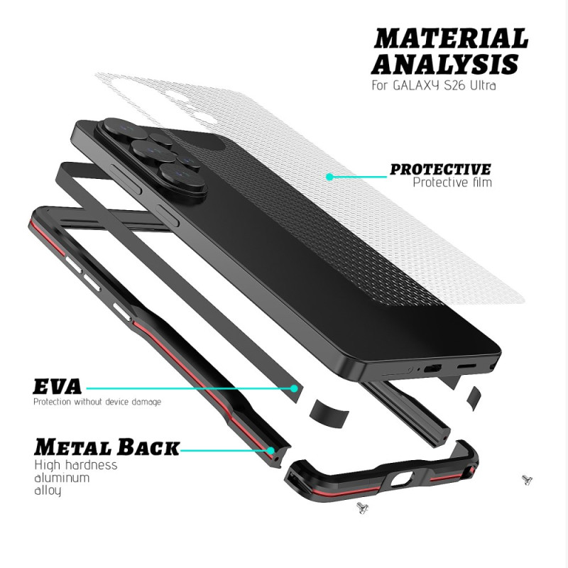 Protégez votre Samsung Galaxy S26 Ultra avec cette coque bumper en métal premium LUPHIE. Son design antichoc avec système de verrouillage par vis offre une protection optimale contre les chutes et rayures, tout en conservant un profil élégant et une prise en main confortable.