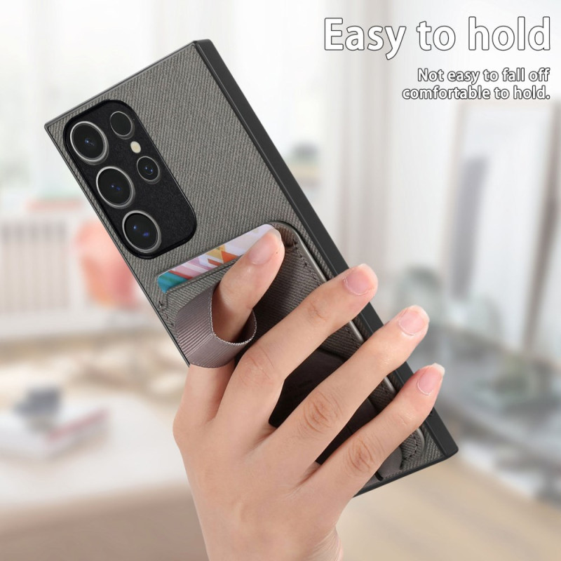 Protégez votre Samsung Galaxy S26 Ultra avec style grâce à cette coque multifonctionnelle. Dotée d'un porte-cartes intégré et d'un support pliable bidirectionnel, elle allie praticité et élégance avec sa texture tissu premium et sa protection militaire.