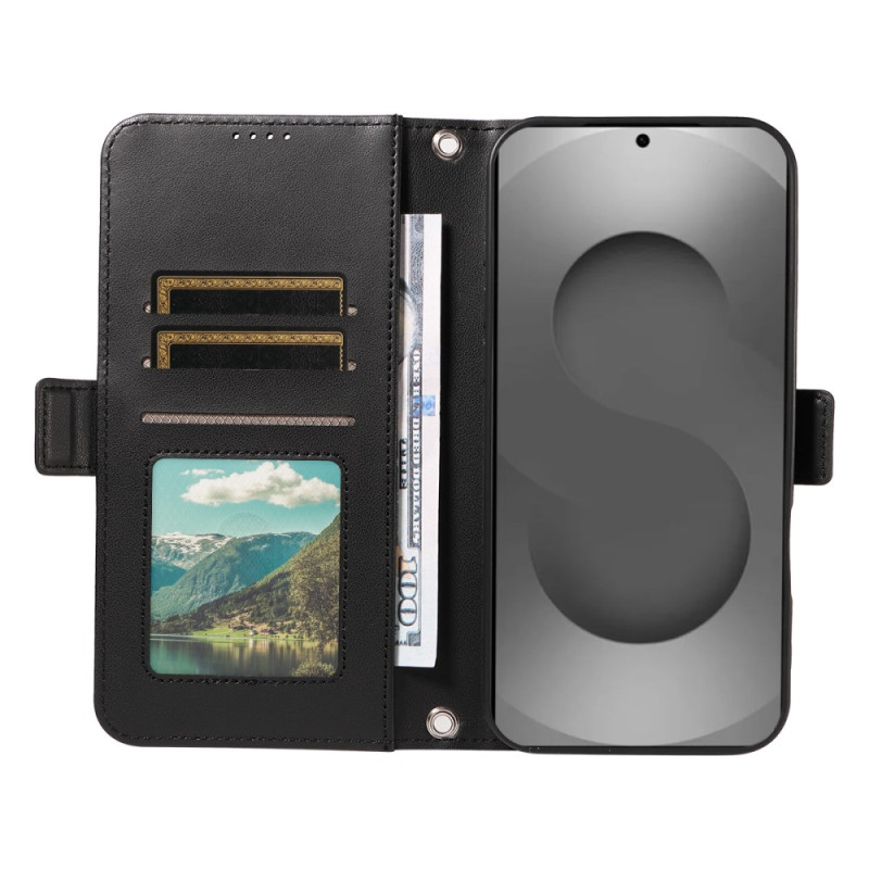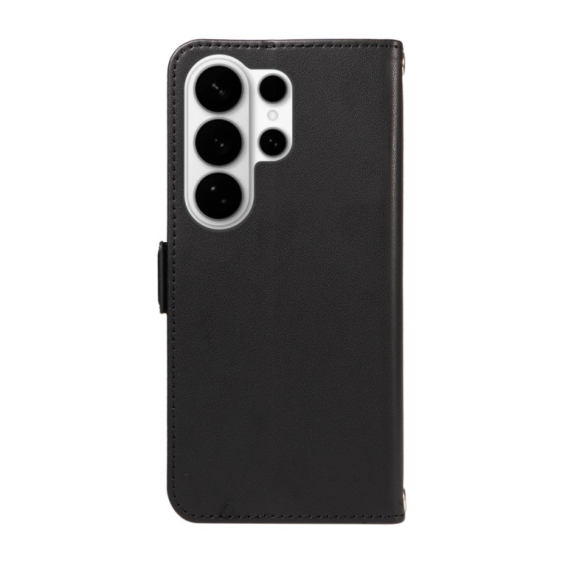 Étui élégant pour Samsung Galaxy S26 Ultra alliant luxe et praticité. Décoré de strass avec motif losange, il dispose de 3 emplacements pour cartes, d'une poche pour billets et d'une protection RFID. Le rabat magnétique se transforme en support.