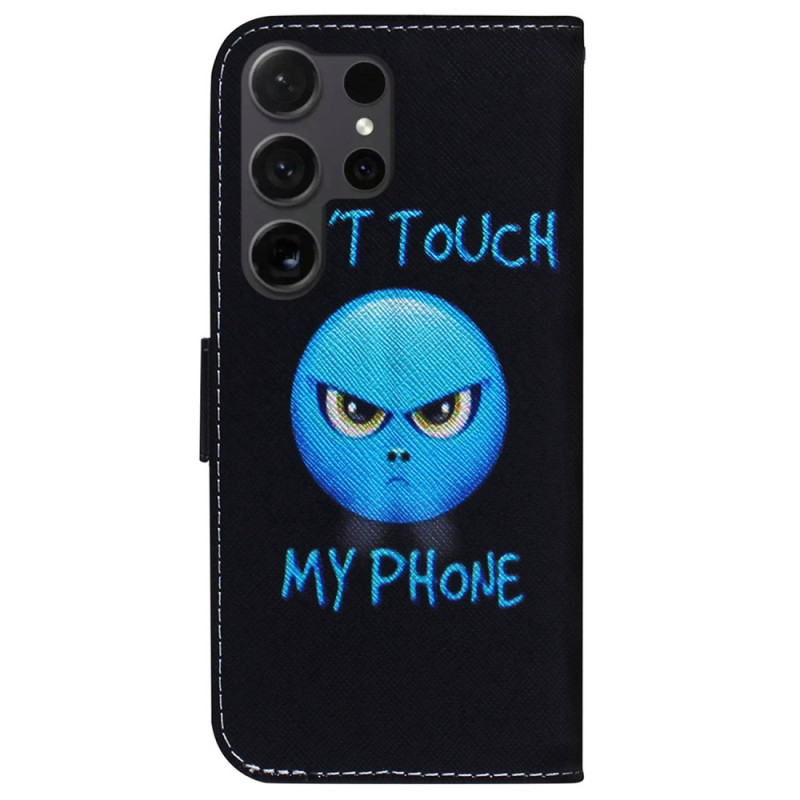 Étui portefeuille élégant pour Samsung Galaxy S26 Ultra avec motif imprimé 'Don't Touch My Phone'. Doté de compartiments pour cartes, support pliable et fermeture magnétique sécurisée. Protection optimale avec style et fonctionnalité au quotidien.