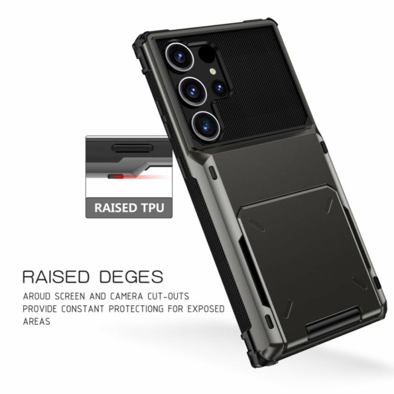 Protection premium pour votre Samsung Galaxy S26 Ultra avec double couche PC + TPU résistante. Compartiment porte-cartes intégré, coins renforcés anti-choc et rebords surélevés pour protéger l'appareil photo. Accès complet à toutes les fonctionnalités.