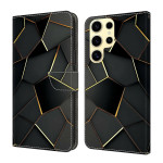 Étui portefeuille élégant en cuir PU pour Samsung Galaxy S26 Ultra. Design sophistiqué noir et or avec bordures biseautées. Support pliable ajustable, fermeture magnétique sécurisée, 2 emplacements pour cartes et compartiment à billets. Protection complète contre les chocs et rayures.