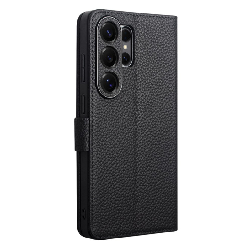 Étui portefeuille élégant pour Samsung Galaxy S26 Ultra combinant protection premium et fonctionnalité. Doté d'une texture litchi sophistiquée, d'une fermeture magnétique sécurisée, de 3 emplacements pour cartes et d'un support ajustable multi-angles pour une expérience mains libres optimale.