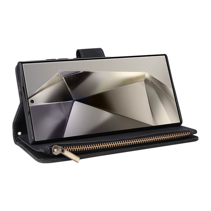 Étui portefeuille élégant pour Samsung Galaxy S26 Ultra combinant protection et praticité. Doté de multiples emplacements pour cartes, d'une poche zippée pour la monnaie, d'une fermeture magnétique sécurisée et d'une dragonne pratique...