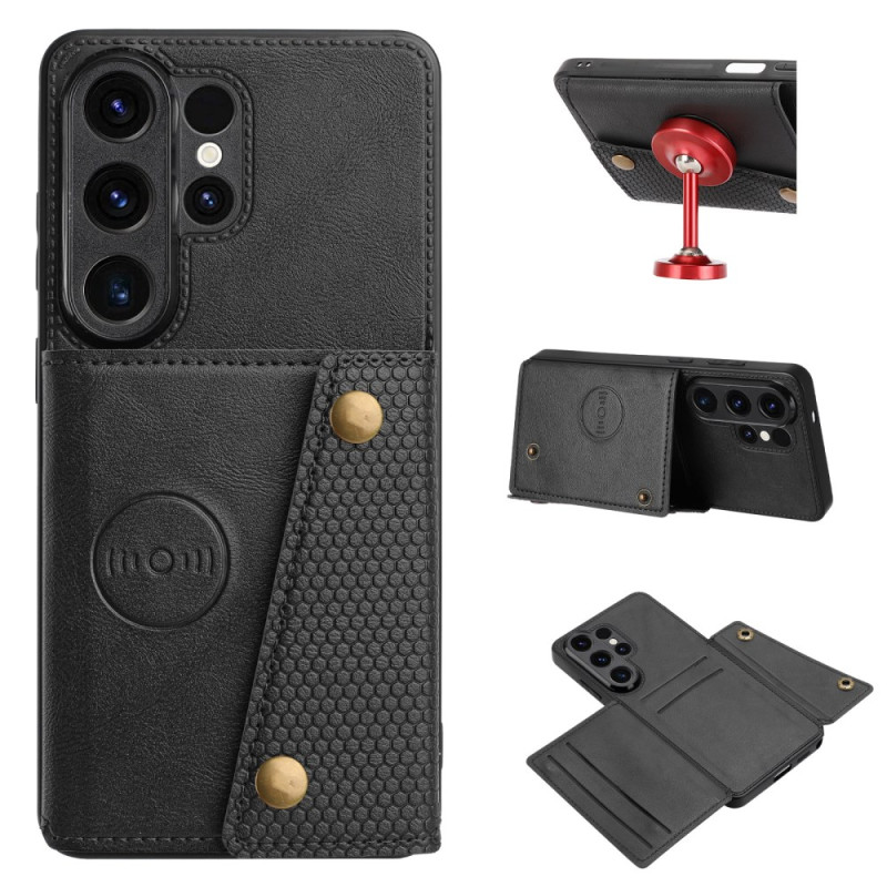 Protégez votre Samsung Galaxy S26 Ultra avec cet étui multifonctionnel en cuir PU et TPU. Doté de porte-cartes intégrés, d'un support ajustable pour un visionnage mains libres et d'une fermeture sécurisée à double bouton-pression. Compatible avec les supports magnétiques de voiture pour une utilisation pratique au quotidien.