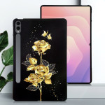 Descubra a nossa elegante capa protetora para o seu Samsung Galaxy Tab S11 Ultra. Fabricada em TPU macio, oferece uma óptima proteção contra choques e riscos. O padrão exclusivo de borboleta dourada e rosa dá um toque de elegância ao seu tablet. Os recortes precisos permitem um acesso fácil a todas as funções.