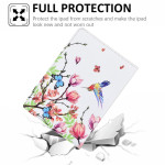 Descubra a nossa elegante capa para o Samsung Galaxy Tab S11, que combina estilo e funcionalidade. Com um design floral e de pássaros, oferece proteção total, um suporte dobrável, ranhuras para cartões e uma argola para caneta. Fabricada em pele PU de alta qualidade, é resistente e absorve os choques.