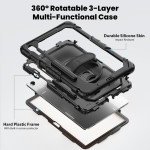 Descubra a nossa capa de proteção completa para o tablet Samsung Galaxy Tab S11. Combinando um revestimento interno de PC rígido com um revestimento externo de silicone macio, oferece uma proteção superior contra impactos. Com o seu suporte rotativo de 360 graus, a correia de pulso ajustável e o suporte para lápis integrado, esta capa combina funcionalidade e segurança para o seu dispositivo.