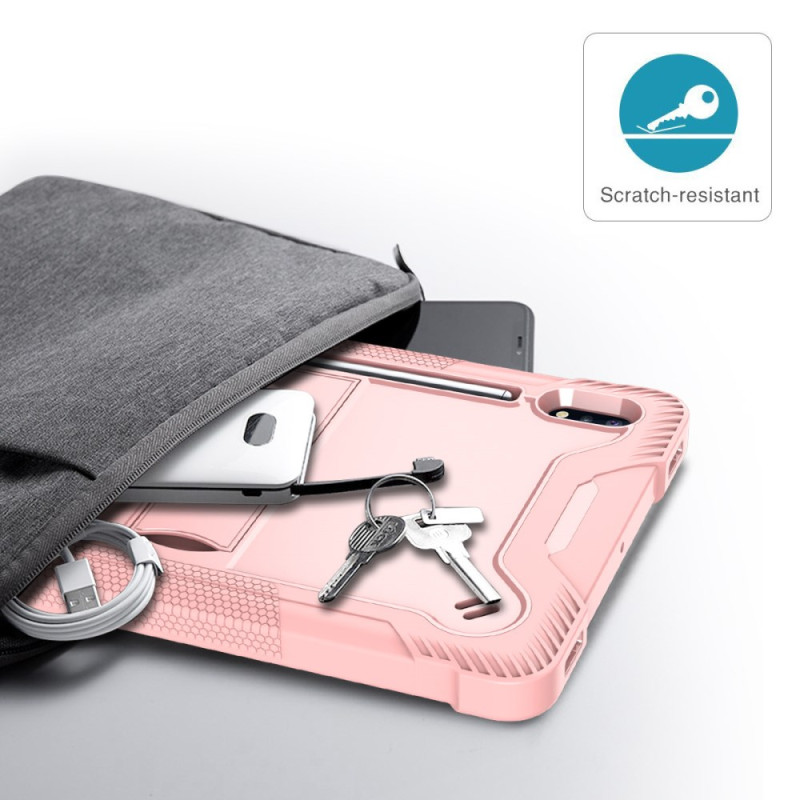 Com o seu design de suporte, esta capa oferece uma proteção poderosa e um ajuste perfeito graças à sua construção em silicone e plástico não tóxico.